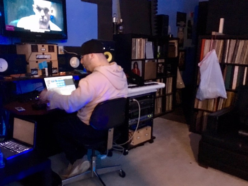After Villain’s 2 tracks were mixed, he cue’d up an obscure jazz sample to mess with. He played it a few times and Jon was loving it. Jon flipped it and just started chopping it up and was “hearing” it all come together as he plucked the pieces apart and then placed them carefully together, adding other elements along the way.