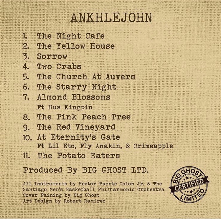 Ankh shared “Yellow House”‘from Van Ghost. Before sharing it, he was emphatic that it still needed to be mixed but it was close. What I heard sounded damn near flawless from a mixing perspective, though my ears are not quite as acute as Big Ghost’s. Ankh is his usual gritty, shit-talking self. Big Ghost creates an ambience of futuristic background strings, synth guitars with heavy effects, some knocking bass. The track is loaded with layers of subtle samples flipping here and there, fitting perfectly for Ankh’s cinematic griminess. Big Ghost certainly knows how to get the most out of the artists he works with. His work always has an incredibly high production value and is always impeccably mixed. Van Ghost is shaping up to be one of the dopest albums of the year. For AnkhleJohn, it sounds like he’s got plenty more up his sleeve and that’s just for 2018.