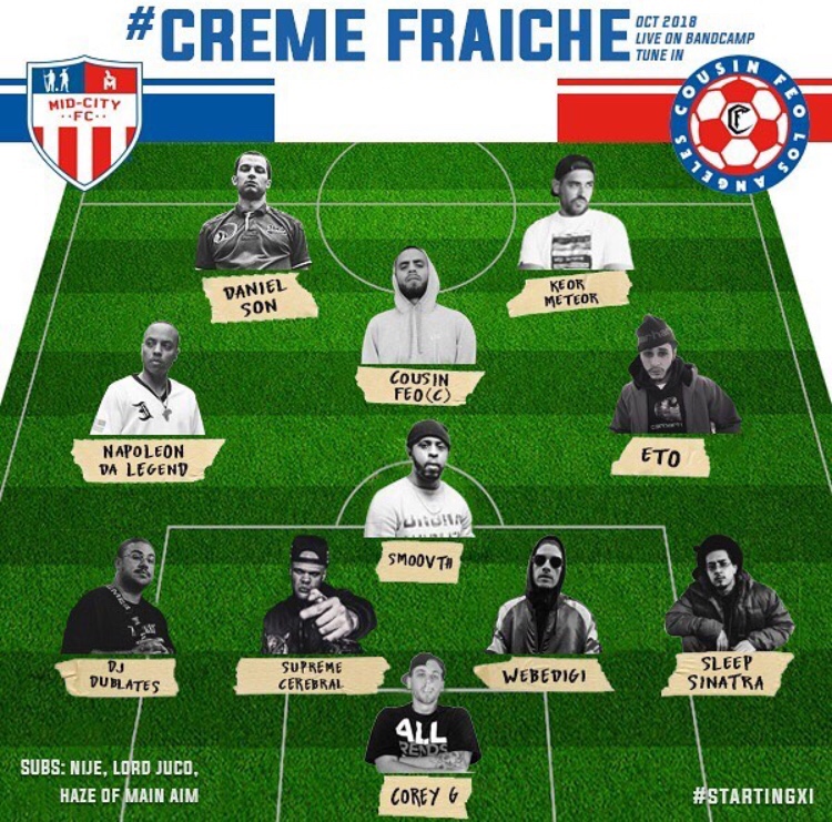 If you know Cousin Feo or follow him on social media, you know that he frequently gets into in-game commentary and will easily converse with any “real football” fan. Cousin Feo’s affinity for soccer is also evident in his lyrics, song titles and album artwork. The L.A. emcee brings that passion and competitive fire to his own projects as well. After dropping the critically-praised A little Caviar back in March, Cousin Feo returns with another helping of fine cuisine, this time serving up some Creme Fraiche for hip hop heads.