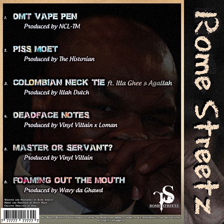 “Master or Servant?” Prod by Vinyl Villain is a snake-charmer banger. Rome coaxes the serpents to bend to his will, coming clever with lines like: