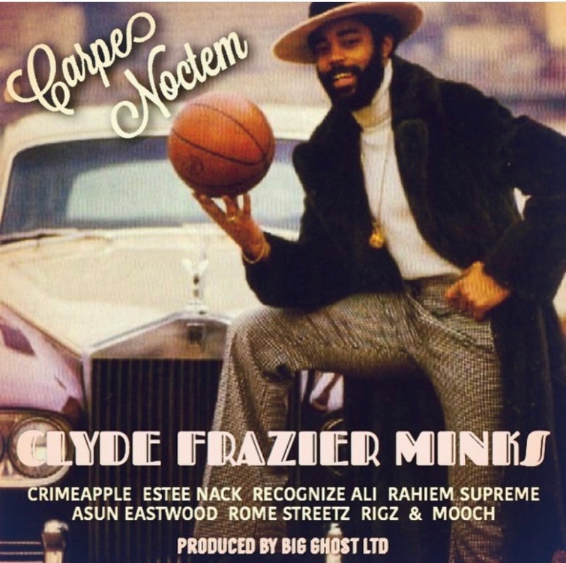 Big Ghost Ltd delivers the second monster posse cut off his upcoming Carpe Noctem project. With “Clyde Frazier Minks,” some of the usual suspects are back to body Big Ghost’s production yet again. This one features Crimeapple, Estee Nack, Recognize Ali, Rahiem Supreme, Asun Eastwood, Rome Streetz, Rigz and Mooch. Big Ghost brings the distorted instrumentals on this banger, with swirling synth effects, twisted guitar notes and tumbling drums. The beat switches a couple times throughout, using some subtle digi effects, while leaving plenty of space for the emcees to all do their own fly maneuvers on the beat.